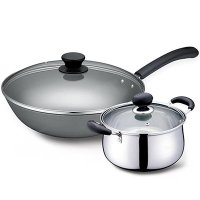 32CM铸铁炒锅, 使用方便快捷,铁质更纯 ,富含有益人体铁元素,有益健康;人性化手柄设计,隔热防烫,手感舒适;20cm不锈钢汤锅, 优质不锈钢基材,导热均匀快捷,坚固耐用; 锅体内外镜面抛光处理,时尚,铮亮易洁;人性化导磁底,适合液化气,电磁炉等多种热源;出气孔强化玻璃盖,营养美味。
