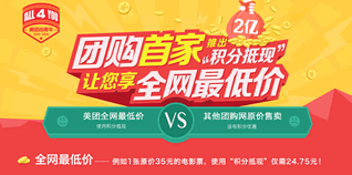 美团网团购首家推出“积分抵现”,让你畅享全网低价!在美团网购物下单时,选择使用相应积分抵扣现金即可。手机美团提交订单后,在“支付订单”页面勾选使用积分即可抵现。
