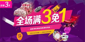 京东商城家居/家纺/厨具/家具/建材/宠物用品联合特惠,至2014年03月28日上午10点,全场任意选购三件即可减免一件,相当于6.7折的优惠,不少东东都是近期好价,值得选购!