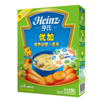 亨氏优加营养胡萝卜面条252克/盒,苏宁易购目前报价8.9元,包邮。同款,母婴之家、乐友、顺丰优选等商城均报价12.9元,都不包邮。苏宁易购价格优惠且包邮,适合多买几盒。