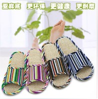 DAIDAINIAO居家室内彩色条纹亚麻拖鞋,天猫商城“曼人鞋类专营店”报价9.9元,拍下仅需6.6元包邮。价格实在,男女款可选,共有深蓝色、咖啡色、粉红色、紫色、绿色可选。