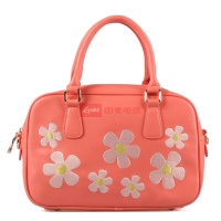别样一番的蜜桃红,小清新般的花朵,小巧精致的包体,给你带来阳光活力的感觉!精致的花朵绣线工艺,防磨损的蘑菇脚钉,四叶草图案的里布,每一处细节都采用优质的工艺。