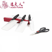选夫人是广东阳江十八子作集团旗下的厨房刀具品牌。选夫人美啄四件套刀具XD1205,采用3Cr13不锈钢材质,使用安全方便。套装共包含斩切刀、切片刀、多用刀、厨房剪各一件,能满足基本的厨房所需。