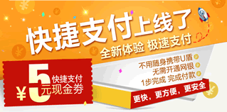 国美快捷支付上线了!5月9日—5月23日,首次通过国美在线快捷支付成功,可送5元现金券。现金券在国美在线购物相当于钱使用哦!经常在国美购物的朋友可以考虑去开通,快捷支付比传统的网银支付方便又省时。
