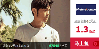 聚划算Meters Bonwe美特斯邦威品牌团,美特斯邦威官方网店全场9.9元起,且全店包邮。活动期间内,下单还送周杰伦海报(限前10万单),还可领取满159元减20元优惠券享受满减优惠,相当给力!