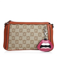 百丽(Belle)棕色绣花布配桔红油蜡人造革手袋,经典绣花布与纯色窄边PU拼接,工整的车缝婉蜓俏丽弧度,一针一线都带来对品质的可靠诠释。搭配使用的可脱卸肩带,斜跨手拿都随心所欲。优质五金件品质可信赖,都市OL精致生活。拉链手机袋,暗袋一应俱全,层次清晰有序。红唇造型镜子是这款宝宝的亮点,方便日常补妆。
