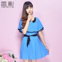 欧美系的斗篷装在夏日裙装中重新燃起了时尚斗志,仿照奢华大牌的造型设计,将复古风注入了名媛的优雅气质,腰间搭配纯色丝质腰带,修身效果立显,风琴百褶展现出迷人的OL个性。将传统的圆领进行变异改造,半月形拼接展现纤细颈线。柔爽的雪纺面料,耐磨且不易起球,具有高悬垂性和透气性。