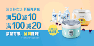 品聚网清仓特卖场,折后再满减,全场满50元减10元、满100元减20元。活动商品不算很多,但价格都还不错,尤其是折后再满减。活动主要包含一些酸奶机、护肤、洗涤、沐浴用品。