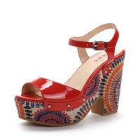 Shoebox鞋柜13年夏款民族风撞色炫彩高跟凉鞋 1113303232,天猫商城报价49元,收藏店铺获取10元优惠券,实付39元包邮。同款其他同类型B2C商城报价均在59元左右。目前,红、绿、黄三色均有货,尺码还比较齐全,虽然跟高有11尺码,但防水台约4厘米,所以穿起来还是比较舒适的。