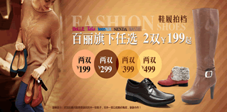优购网BELLE百丽旗下品牌鞋靴专场促销,全场任选2双199元、任选2双299元、任选2双399元、任选2双499元。活动参加品牌包含:Belle百丽、TATA他她、INENT茵奈儿、TEENMIX天美意 、SENDA森达、BASTO百思图、15分钟、Shark Emperor鲨鱼皇等。喜欢的朋友可以去选选。