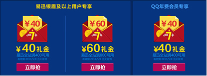 又到了每月8日的易迅网会员日,此次会员日又逢易迅7周年,10点开始,易迅网银盾以上用户可以免费领取满400减40元,满8000减60元的优惠券,10点-19点,每个整点放出3000张累计100元优惠券,所以下手要快!优惠券有效期至限今天;另外,易迅网如果连续签到7天的还可以领取200元易迅网套券,(5元无限制券,200-25、1000-70、2000-100满减券),另外首次登陆手机客户端还可以获取50-5优惠券,易迅网的优惠券在打折特价的时候也可以用,很给力。