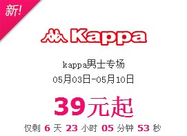 49元的Kappa女式伦敦奥运主题英文印花圆领短袖T恤,59元的Kappa男式休闲运动翻领纯色短袖POLO衫,119元的Kappa男式亮色条纹耐磨板鞋。T恤、POLO衫、运动包、鞋、卫衣、夹克等都有参加特卖,选择范围较大,男女款都有。