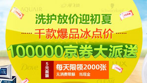 京东商城个人洗护用品低价迎初夏,十万京东商城现金券大放送,每天2000张5元无消费限额京券免费领。