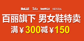 4月19日-22日,优购网百丽旗下品牌男女鞋特卖,全场满300减150元,相当于折上5折,力度还是很给力的!百丽旗下的BeLLE百丽、Tata他她、TEENMIX天美意、Senda森达、BASTO百思图、INNET茵奈儿、FGN富贵鸟、FED、B.SILLY等都参与活动,选择范围较广。