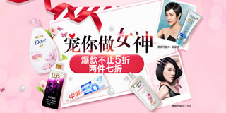 宝洁领券满145减100,ABC2件7折3件6折,云南白药5折再送壕礼,施华蔻2件7折3件6折,资生堂2件7折3件6折,佳洁士爆款1元秒杀,苏菲99元3件。