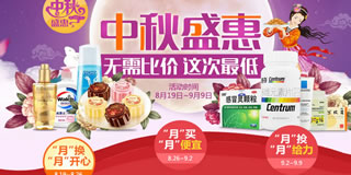 中秋佳节即将来临,健一网与您共度佳节,亲情回馈,全场1元起购。本次活动有月饼换购专区,签到抽奖专区,满99减30专区,三九系列买赠等多个专区,活动时间为8月19到9月9日,有兴趣的可以来看看!