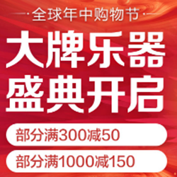 京东全球年中购物大牌乐器专场,部分满300-50/1000-150!京东目前有一场大牌乐器专场促销活动,部分满300减50、满1000减150的促销活动,同时页面还可领取满59元减2元支付券和白条满59减3元支付券。