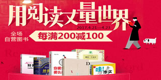 中国图书网春季淘书节图书促销专场,满200减80。中国图书网在世界读书日期间开启了一场万种图书的促销活动,此次活动有两大力度由你选择:满200减80优惠促销;全场购书满赠礼品,此外均可享受满29包邮。如果叠加满减优惠,则可享受低至1.8折超值优惠。