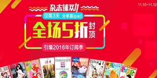 杂志铺双十一火爆来袭,图书大降价,全场5折封顶,抢红包、福袋、ipad4!杂志铺双十一全民狂欢,杂志铺9-12日四天不打烊全场五折封顶疯抢,需要的赶紧去看看吧!活动力度挺不错,更多稀奇玩法,各种分享送豪礼,抽ipad4,整点抢杂志铺福袋,限时整点低价。并且还有无门槛5元,10元红包可领取,先领红包,再下单,价格更划算。
