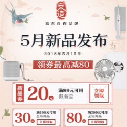 京东5月京造新品发布,新品领券满99减20元(仅新品可用),全场满199减30元/满399减80元。页面内多品类多款商品均可用券,新品券可叠加优惠券,活动时间:5月15日-5月16日。