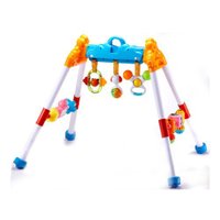 AUBY澳贝婴幼儿童运动早教启智活动健身架463301DS,专为宝宝设计,当宝宝3个月是可以躺着用小脚踢,也可以用手去触碰摇铃,可以促进手臂和腿部肌肉发育。6个月时可以坐着玩玩具,悬挂的公仔和摇铃,借助健身架自己就站立起来。