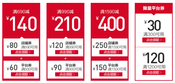 还有超值满减优惠:单笔订单满799元自动减免60元,满1399元自动减免120元。活动时间:04月13日-04月16日。我们还特别为值友提供了站内专享优惠券:满499元减100元,可叠加满减优惠使用。优惠多多,多买多便宜!