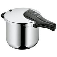 WMF福腾宝Perfect6.5L压力锅,采用了风靡全球的18/10不锈钢,在不锈钢中加入18%铬+10%镍,更加防锈且耐腐蚀,在两层不锈钢中以三明治夹心防锈加入纯铝以增加锅体的导热速度节省能源,卡扣式锁扣确保不漏气,带有两档橙色圈的烹饪环指示器方便压力设定,手柄出的一键式旋钮以及压力选档方便压力设置和蒸汽释放,可拆卸手柄便于直接清洁冲洗,此款高压锅适用于燃气炉、电炉、电磁炉和电陶炉等热源,内壁带有注水线,德国制造。