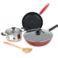 maxcook美厨不粘炒锅汤锅煎盘木铲四件套MCTZ-066,32厘米不粘炒锅+26厘米煎盘+20厘米不锈钢汤锅+木铲,材质:精铁、铝合金、不锈钢、木,适用炉具:电磁炉、燃气灶通用 。