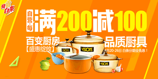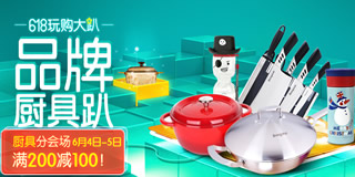 京东商城618玩购大趴,品牌厨具专场,从6月4日到6月5日,满200减100元!活动分为爆品推荐专区、烹饪锅具专区(锅具套件、炒锅、蒸锅、煎锅、砂锅)、水具酒具专区(保温杯、保温壶、塑料杯、玻璃杯、酒杯、酒具)、茶具餐具专区(餐具套装、茶具套装、碗碟盘、茶壶茶杯、勺筷刀叉)、厨房配件专区(保鲜盒、饭盒提锅、一次性用品、储物/置物架、厨房杂件)、刀剪菜板专区(刀具套装、砧板、陶瓷刀、菜刀、铲勺套件)。优惠力度还不错,刚需族们可入手!