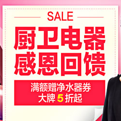 苏宁易购厨卫电器感恩回馈专场,满额赠净水器券/大牌5折起。苏宁易购现有一个厨卫电器促销专场,场内大牌商品5折起,满额还可赠送净水器优惠券。
