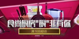 1号店厨非有你厨房用品专促,满168-68。1号店今日推出了一个厨房用品专促,场内满168-68元的活动力度。