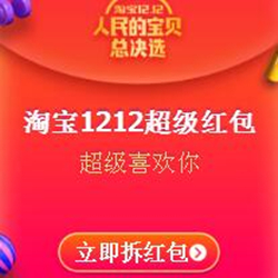 淘宝(点此领取):即日起,持续到12月12日晚12点,每天都有3次抽奖机会!最高可中1212元。
