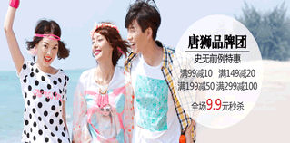 1号店“唐狮官方旗舰店”Tonlion唐狮品牌团购专场,全场男女装低至9.9元,购物满99元减10元、满149元减20元、满199元减50元、满299元减100元。全场购买任一件单品都可免运费,非常给力!