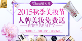 唯品会大牌美妆免费送,满60元减60元无限制优惠券免费领取!活动类似于聚美的免费送活动 。唯品会60元无门槛优惠券,先领券,等到9月1日晚上8点开始使用券在“大牌美妆免费送”福利专场兑换商品,福利专场产生的邮费在订单签收之后9月15日前以1000唯品币(相当于10元现金)返还,在唯品会无限制使用。