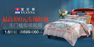 唯品会富安娜专场,1.6折起,高100元红包无门槛即领即用!唯品会开启家纺品牌集团日,富安娜专场活动满减大优惠!活动期间,全场购物1.6折起,满699元立减60元,上不封顶!参与活动,还可领取品牌优惠券,高100元专场红包,即领即用,使用操作更加灵活简单,无门槛即可使用!活动时间截止2015.9.14!优惠券使用期限:2015-09-10 20:00——2015-09-14 09:59!
