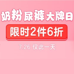 当当网奶粉尿裤大牌日,限时2件6折,活动仅限7.26日一天。