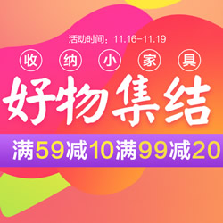 国美好物集结住宅家具促销专场,满59-10/99-20。国美在线11月16日开启了一场住宅家具促销活动,全场商品满59-10和99-20元的优惠力度。