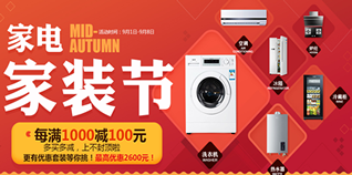 国美在线家装节,装修优惠享不停。大家电每满1000减100,高减2000;家装家居0元购;部分商品买就送;家装福利限时抢不停;全场爆品低价开抢。活动期间,电视满1000减100,高减2000;空调高直降1500;冰箱、洗衣机每满2000减200,高减2000;厨卫小电、厨卫大电及生活电器,满500减50,高减400;净化器满1000减100;高减400;联营大家电全场29元起; 联营小家电4折嗨翻天。赶紧给你家装修一下吧!