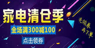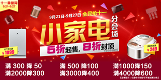 2、小家电部分品类满300减50,满500减100,限特定型号,特价商品不参加满减;