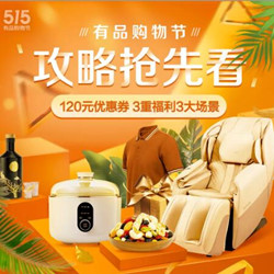 小米有品515购物节,120元优惠券/3重福利3大场景!小米有品目前开启“515有品购物节”预热会场,页面可领取满599-50、满1299-120元优惠券。5月9日-5月15日,红包雨+直降+跨品类满减,最高直降500元,515元神券限量抢!