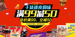 京东商城干货速食调味促销活动,满99减50!某东目前有南北干货、速食方便食品、调味货,活动力度为满99-50,折后不少首页好价;新年将至,调味品、干货都是年夜饭上少不了的,可以趁此活动囤一些,有需要的朋友可以看看!