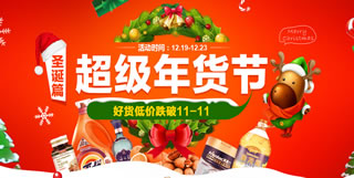 苏宁易购年货节主会场,满399减50元,满599减100元!还剩下不足10天即将跨入新的2017年,圣诞、元旦、春节将会接踵而来,苏宁易购开启了年货节的促销活动,超市打头阵,满399可用50元,满599用100元红包;涉及酒水、粮油、休闲零食、牛奶、生鲜、纸品等分会场。