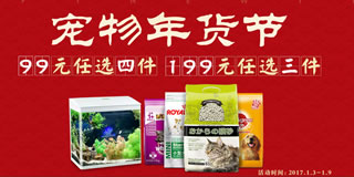 京东宠物年货节专场,99元4件/199元3件。京东目前开启了一个宠物年货节的专场活动,有99元4件、199元3件的优惠。参加活动的有狗狗用品、猫用品,以及水族用品等,涉及的品牌有欧金盾、澳吉尔、珍爱多等,活动时间为2017年1月3日至2017年1月9日,家里养了宠物的朋友可以来页面逛逛哦!