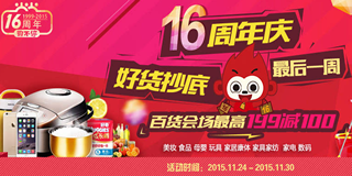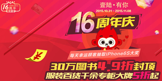 当当网16周年店庆狂欢购,百万商品不止4.9折!趁着双11这把热火,当当网也推出了当当网16周年店庆活动,此次活动包括图书分会场、女装分会场、男装分会场、童装童鞋分会场、鞋包配饰分会场、美妆分会场、食品分会场、母婴分会场、玩具分会场、家居家纺分会场、数码分会场、家电分会场、当当优品分会场、海外购分会场、值当分会场、尾品会分会场等23个分会场。