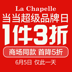 当当网La Chapelle超级品牌日,低至3折!当当目前开启了拉夏贝尔的超级品牌日,低至3折,店铺内有1件3折专区、商场同款5折专区、某猫同款新品5折起、2折专区。
