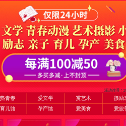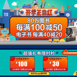 即日起至9月3日,每天10点还可在移动端开抢满300减100(需10元购买)/满200满30优惠券,部分图书配合满减高可做到满600减400的优惠力度。