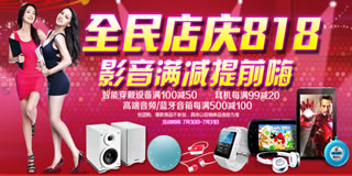 苏宁818全民店庆,影音满减提前嗨活动火热拉开帷幕,智能穿戴设备满100减50,耳机每满99减20,高端音频,蓝牙音箱每满500减100,抢团购,爆款商品不参加满减活动,活动时间为7月30-7月31日,此次活动内容多多,力度也还不错,有兴趣的朋友可以前去页面了解下!