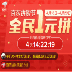 京东拼购节全民1元拼,4.16-4.20日每天10点、16点、20点1元拼购限量抢。