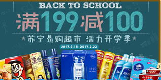 苏宁易购活力开学季日用百货专场,满199-100元!苏宁易购超市目前新开启了开学季日用百货专场活动,部分商品满199元减100元,活动时间截止到2月23日。活动中涵盖了零食生鲜、牛奶冲饮、纸品洗护、美妆个护几大品类分会场,折后价格值得关注!