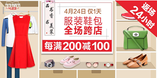 活动包括:男装分会场、女装内衣分会场、运动户外分会场、童装童鞋分会场、鞋靴分会场、箱包配饰分会场等等。活动优惠力度很不错,有兴趣的朋友不妨去逛一逛!